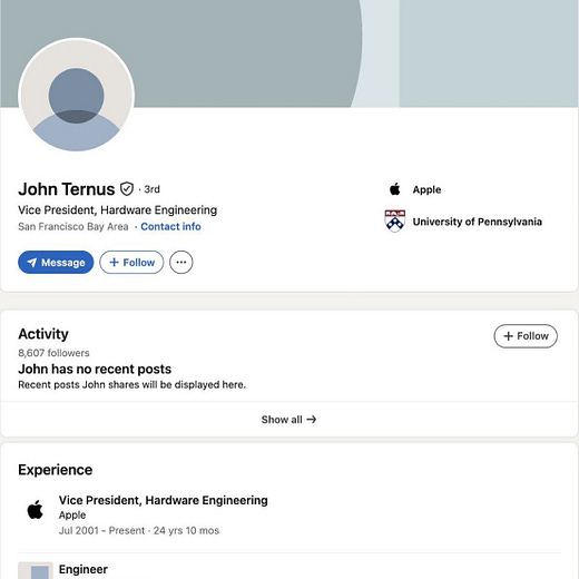 1/ Apple named John Ternus as next CEO. He joined straight out of college in 2001 and has never worked anywhere else. The board passed on the software guy, the services guy, and the actual chip designer. Tim’s bet was supply chain. John’s bet is the stack.