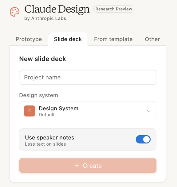 One setting to check before generating: There is a “Use speaker notes” toggle. If you are presenting live, turn it on. Claude puts less text on each slide and writes the spoken detail into speaker notes automatically. If the deck is something people read on their own, leave it off.