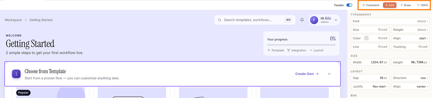 Click the element directly and change it. Three seconds, no cost. The mistake I kept making early on was writing a comment asking Claude to fix something I could just click and type. Comments cost tokens. Clicking and typing does not.
