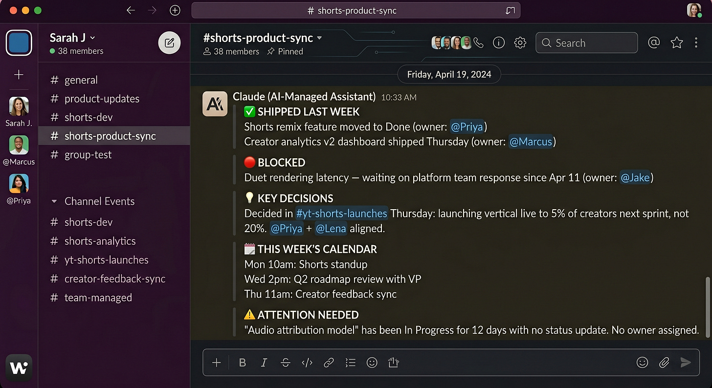 If you run a team and spend Monday mornings piecing together what happened last week, this replaces that.