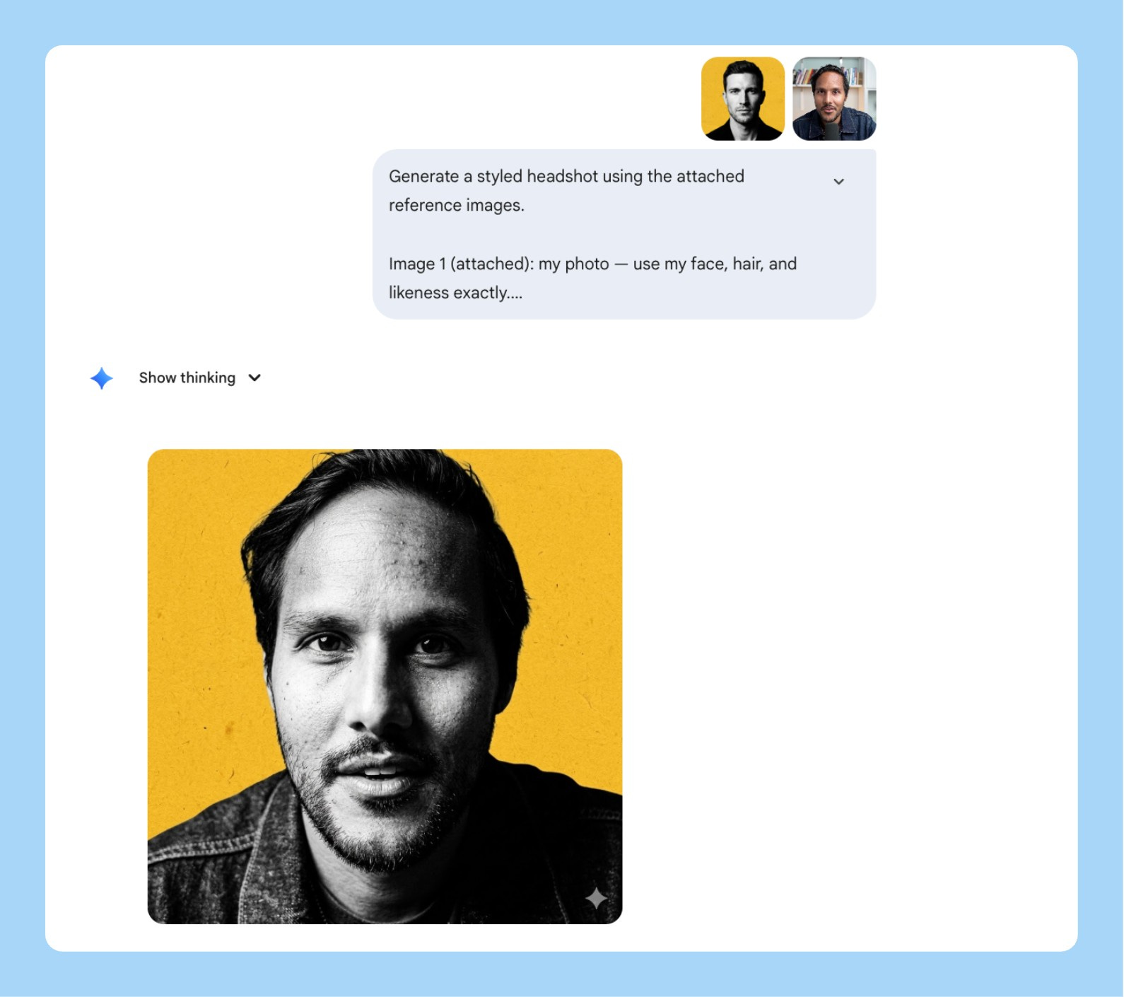 Every founder and PM needs a headshot that doesn’t look like everyone else’s grey-gradient LinkedIn photo. The problem is getting a specific visual style — bold background, high contrast, editorial feel — applied to your actual face without booking a photographer who shoots in that style.