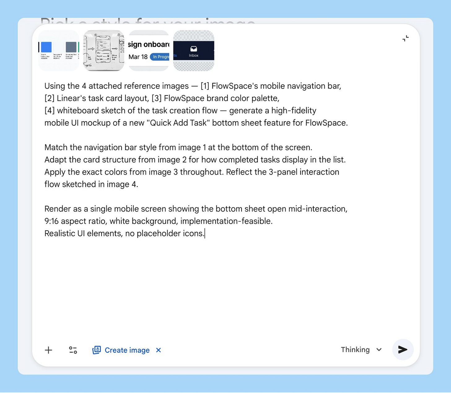 Attach all four. That’s the entire prompt setup.