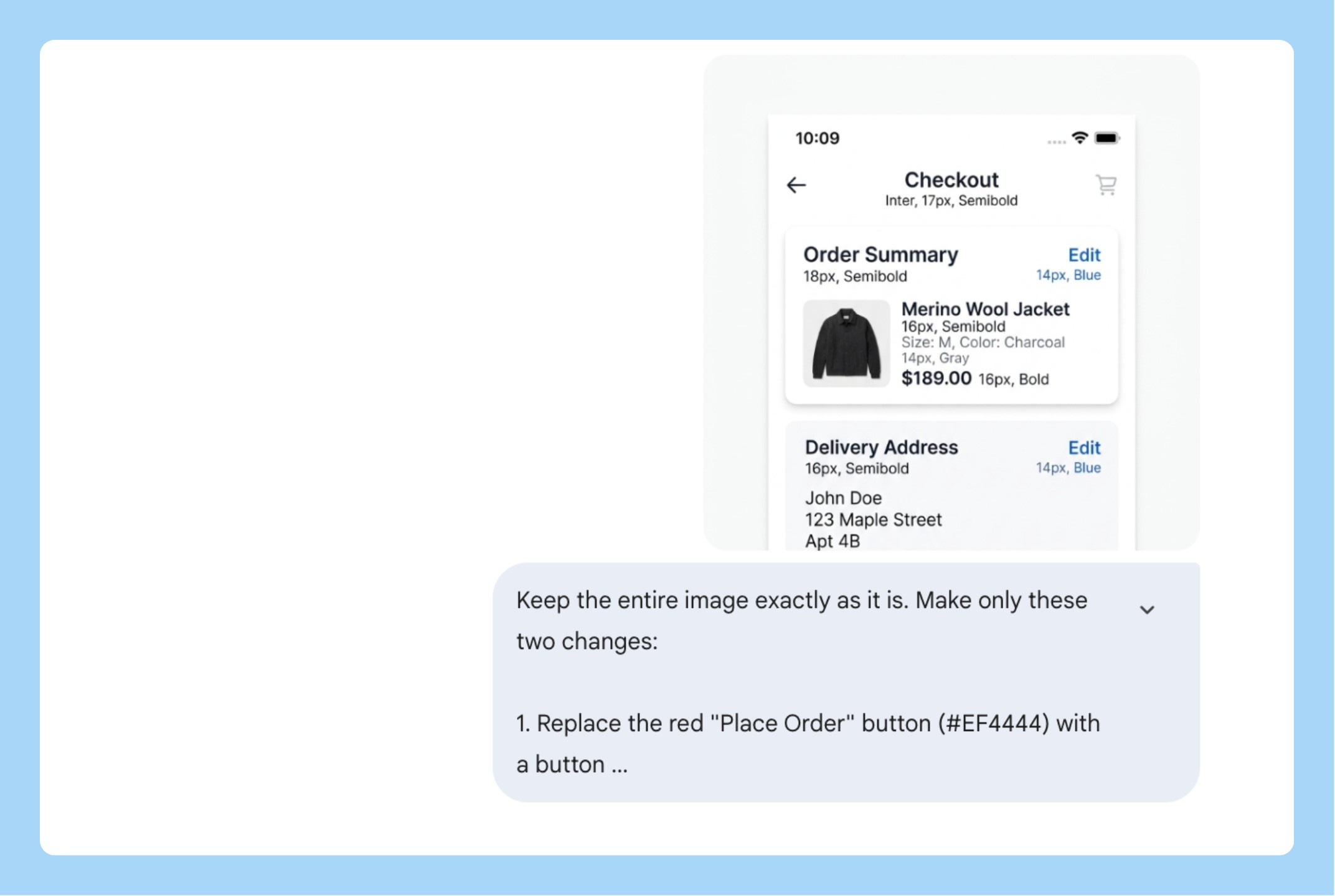 Name what you want preserved, not just what you want changed. When I’m doing a surgical edit, “keep everything else identical” is not specific enough. Name the elements: background, layout, typography, colour of every other button. The more explicit you are about what stays, the more precise the edit.