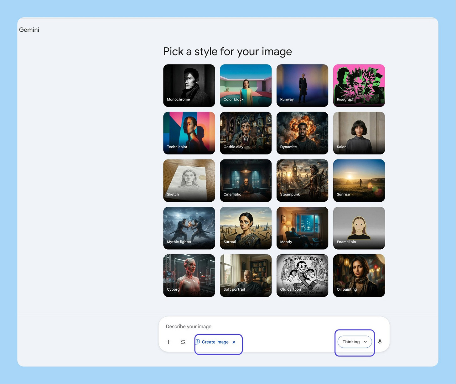 Click on “Tools” and then “🍌 Create image”