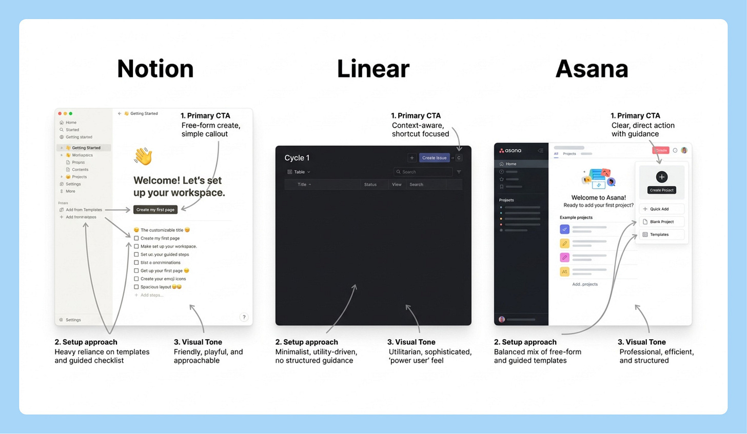 Search the web for the current [SPECIFIC SCREEN — e.g., "onboarding empty